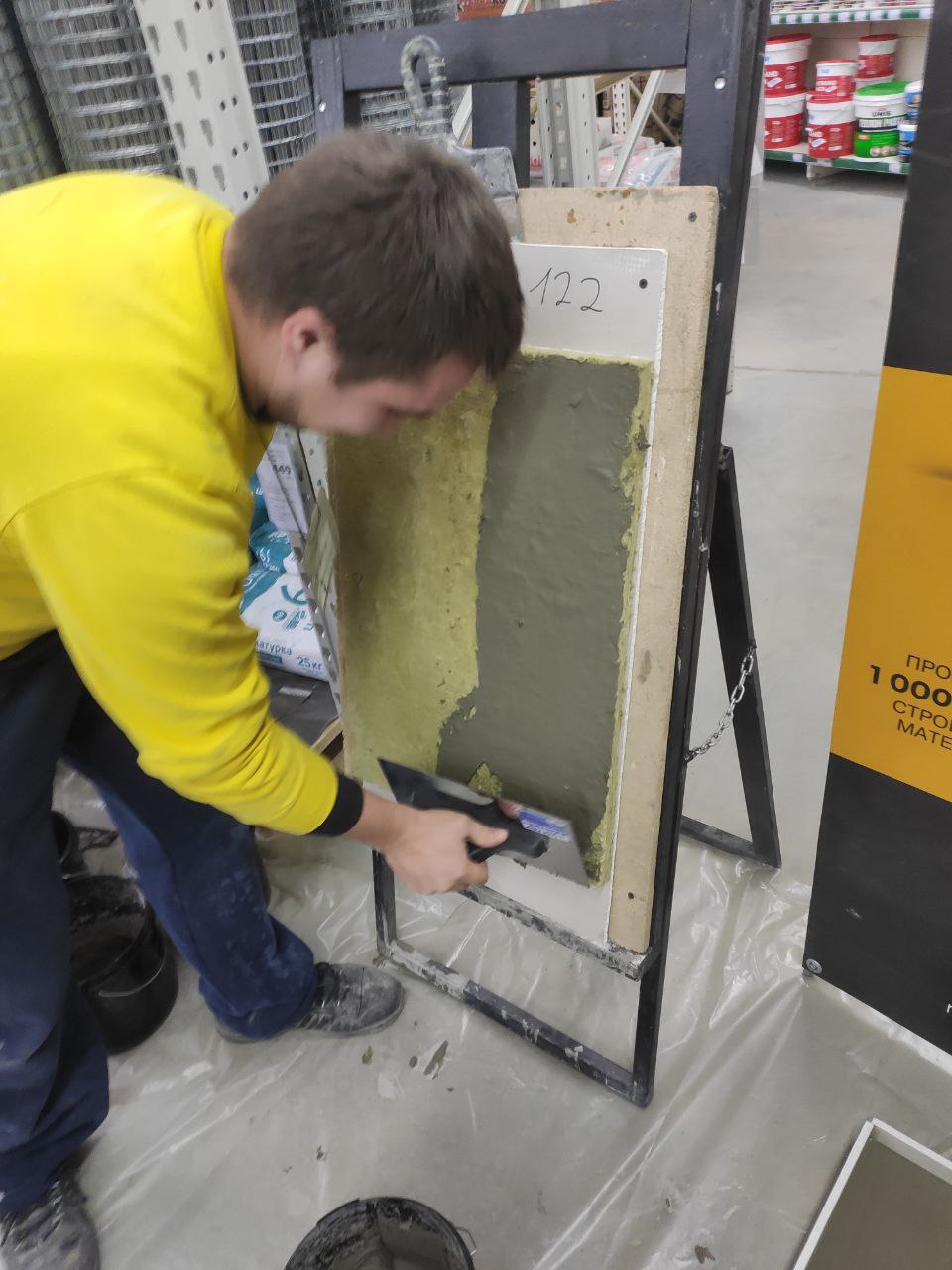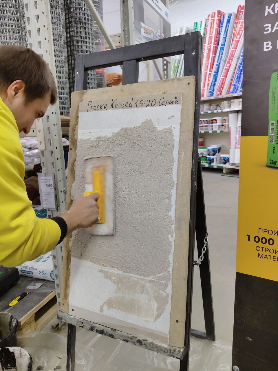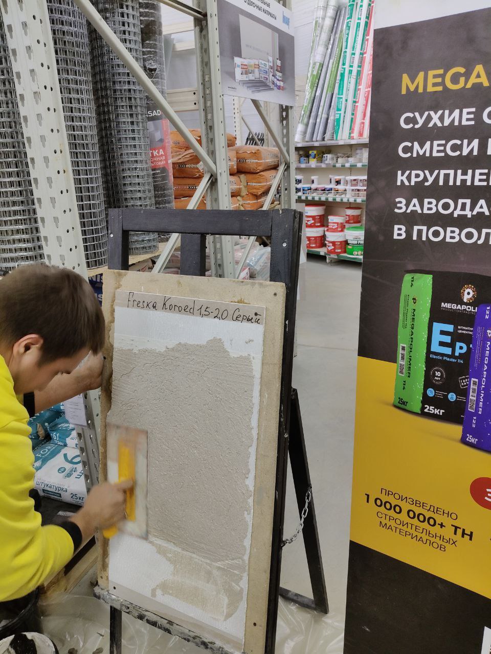 Что сделало эту презентацию по-настоящему ценной, так это ее сугубо практический формат. Вместо того чтобы просто слушать теорию, менеджеры и специалисты «Карат Терминал» лично опробовали все представленные материалы. Они самостоятельно наносили декоративную штукатурку «Koroed», оценивая простоту работы и пластичность состава, и тестировали свойства гидроизоляции, чтобы на собственном опыте убедиться в их эффективности и качестве.